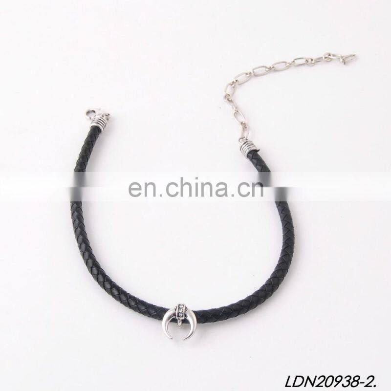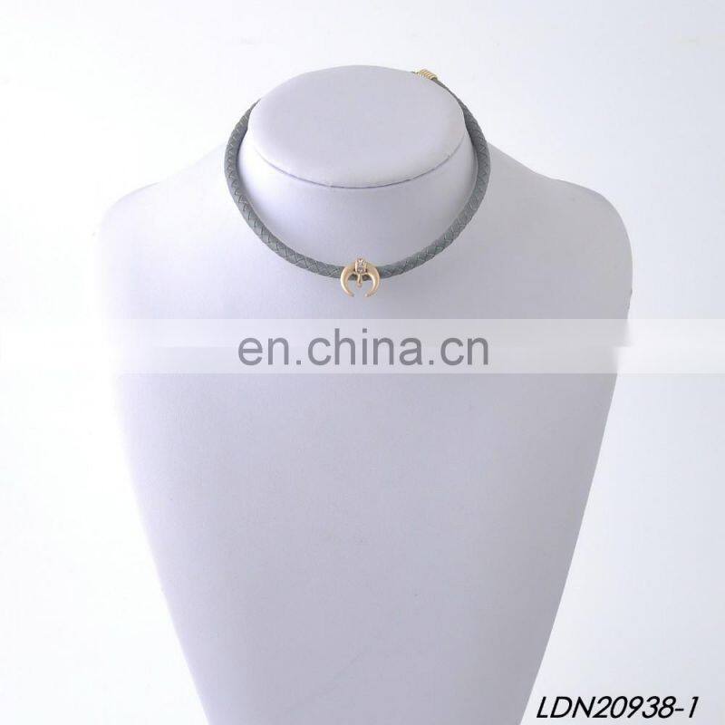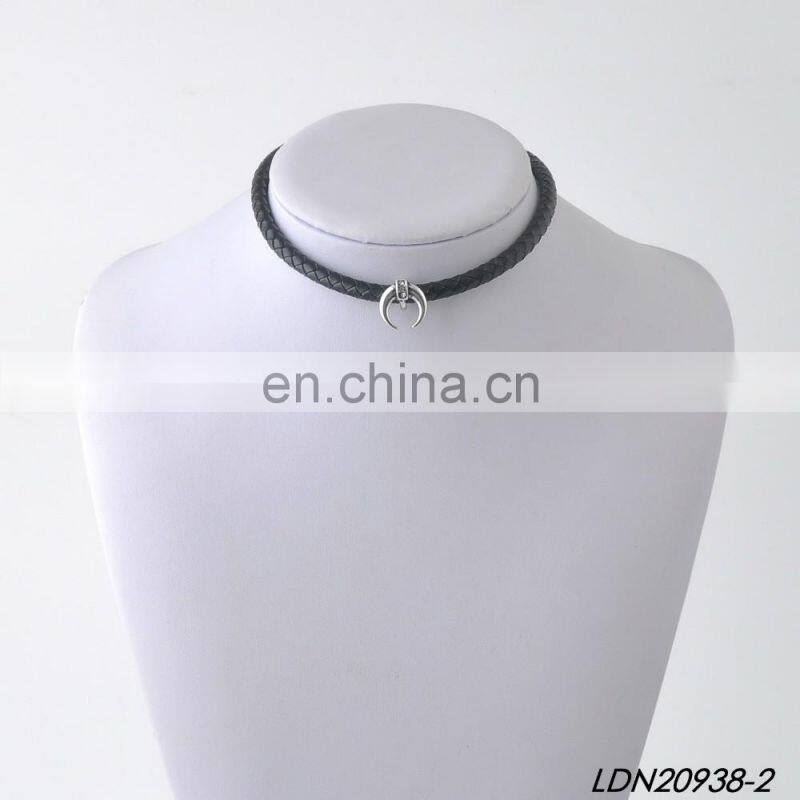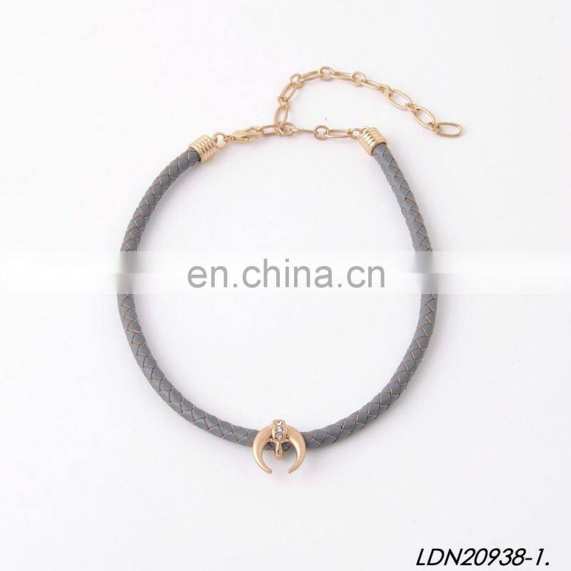 Fashion Mini Crescent Necklace Handmade Leather Choker Necklace Minimalist Necklace