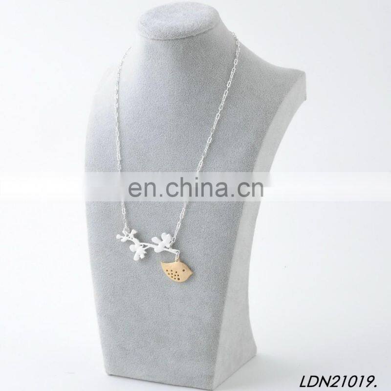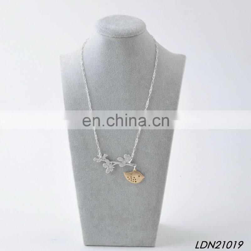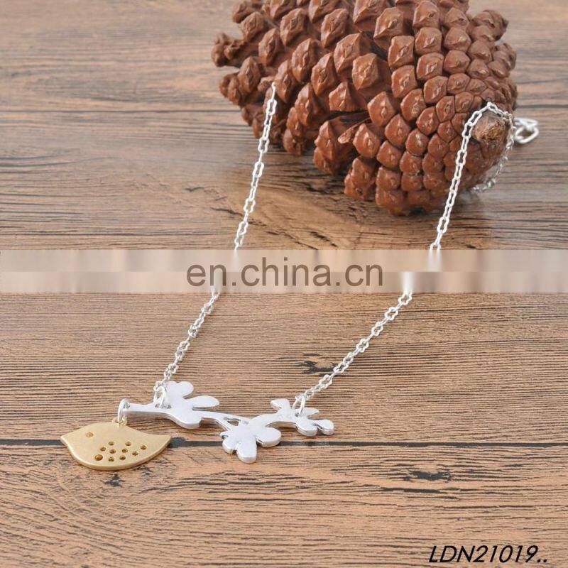Home > Products > Necklaces > New Fashion Design Branch and Gold Bird Pendant Silver Necklace Minimalist Necklaces Jewelry