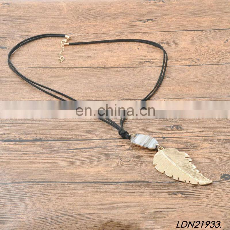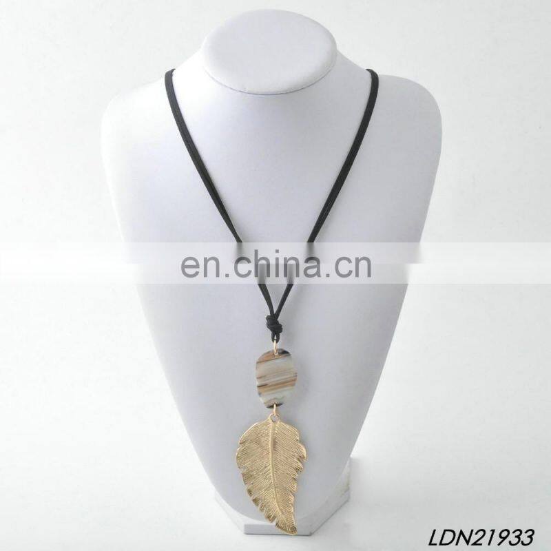 New Fashion Gold Leaves Pendant Y Necklace Long Black Suede Leather Necklace Jewelry