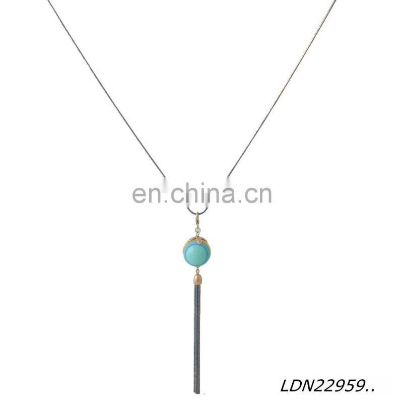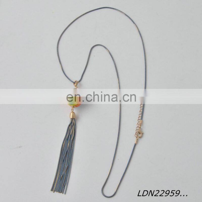 Latest Desion Cat's Eye Opal Ston With Suede Tassels Necklace