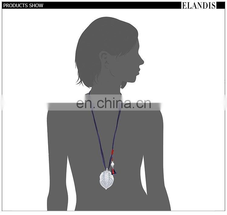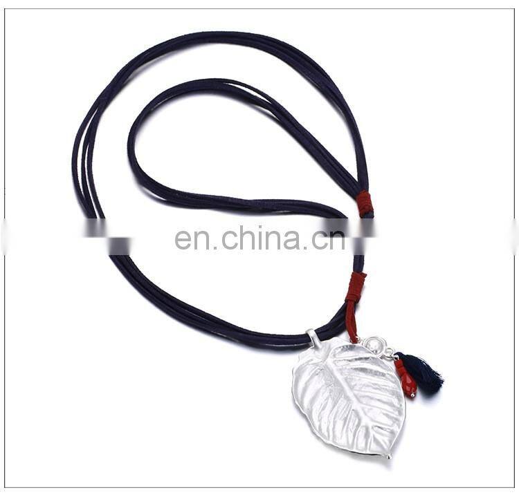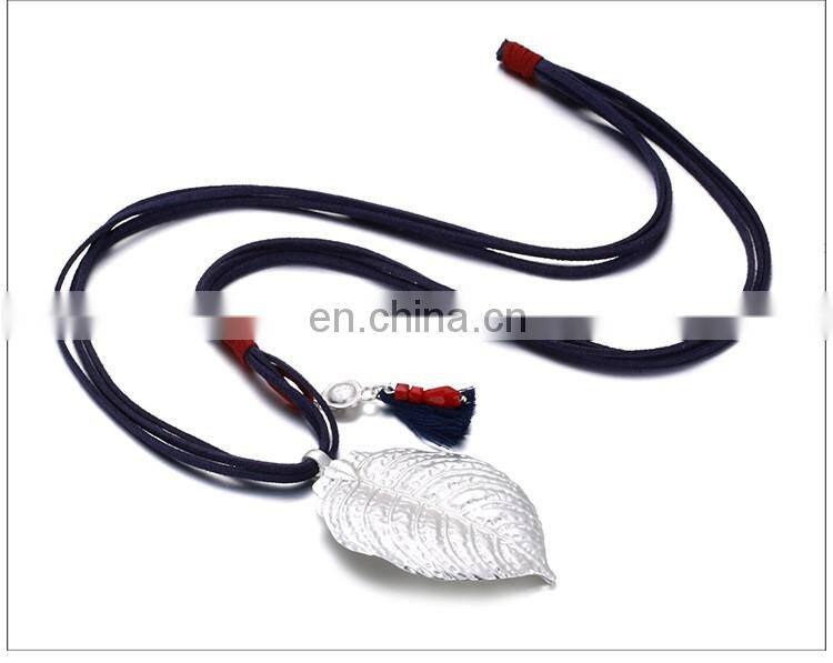 Latest Design Silver Faux Leaf Pendant Necklace Suede Sweater Chain Jewelry