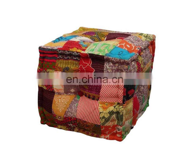 Wholesale Sari Patchwork Floor Pillows Square Handmade Ottoman