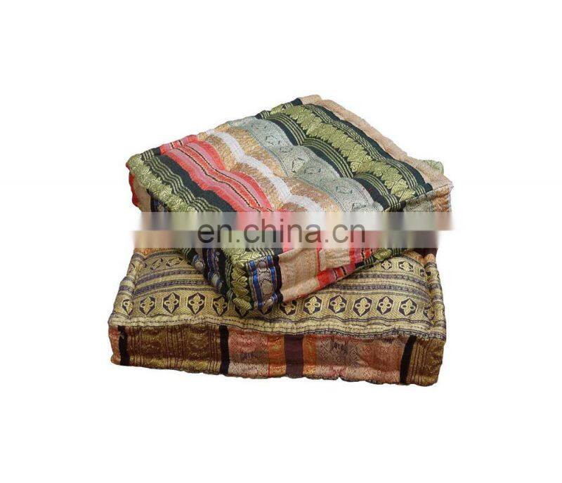 Wholesale Square Sari Patchwork Floor Cushions Hand Embroidered Floor Pillows