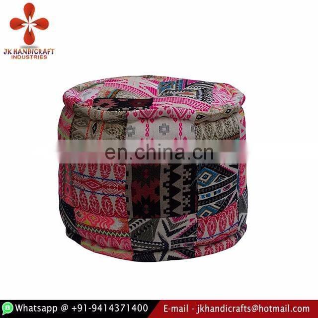 Top Quality Indian Cotton Vintage Fabric Embroidered Puff Cover