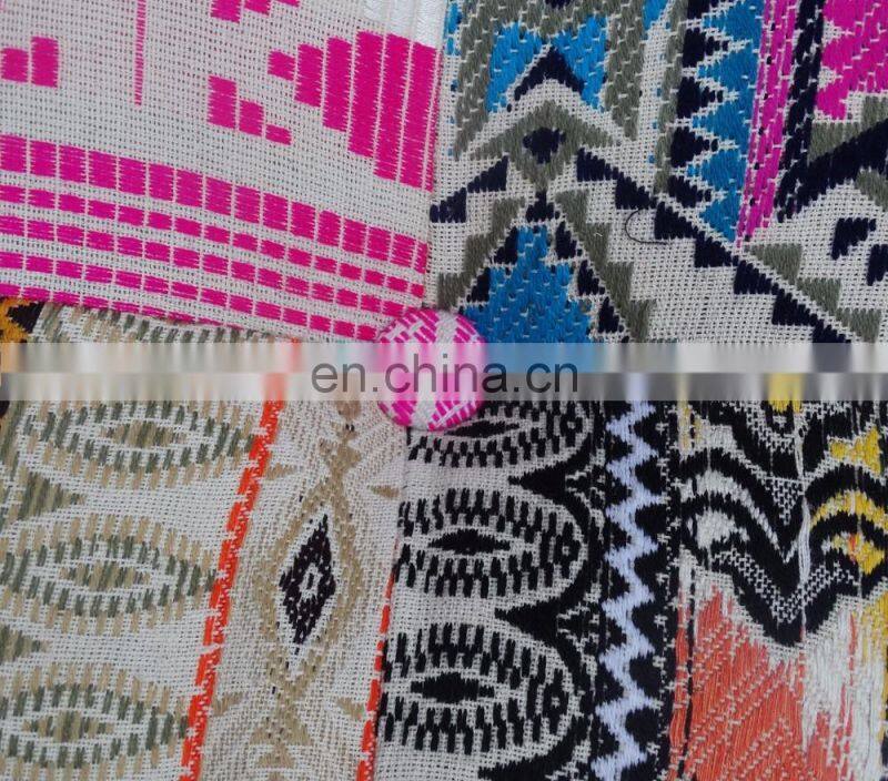 Indian Decorative Cotton Fabric Vintage Embroidered Ottoman