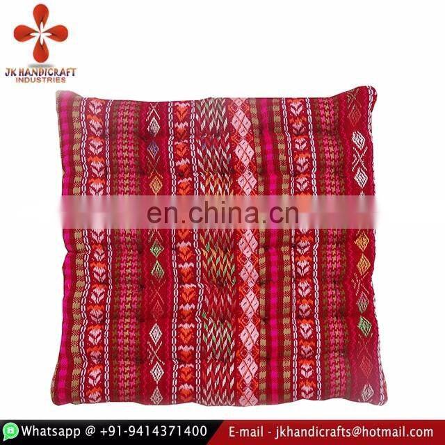 JK Handicraft Industries Present the wide Range Of Hand Woven Bohemian Square Patchwork Chair Pad Cushion With Fiber Filling. These Are Made Out Of Handwoven Bohemian Throws. We Made Different Sizes As Per Customer Requirement.