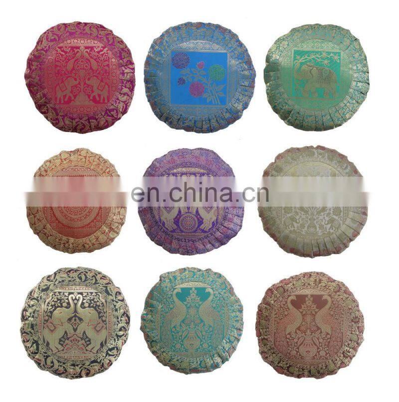 Wholesale Round Silk Cushion Covers Banarsi Silk Brocade Pillow Covers