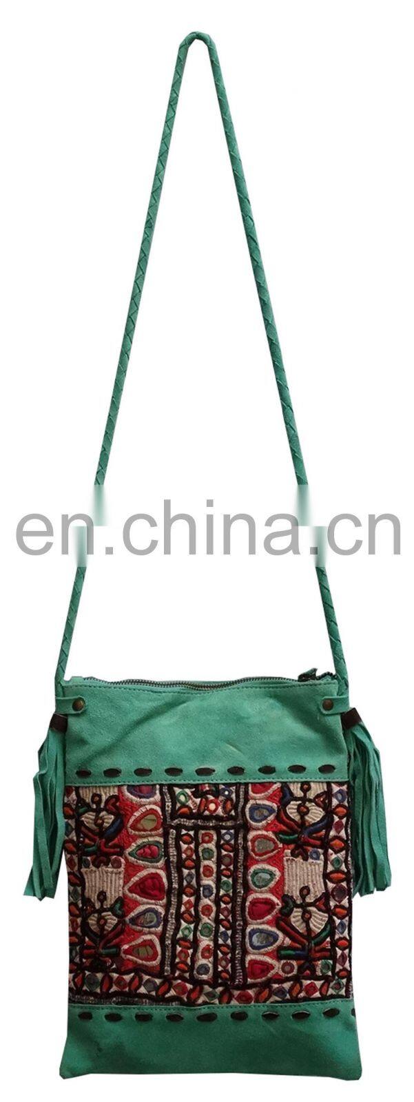 Wholesale Beautiful Kantha Leather Hand Bag Vintage Kantha Wallet