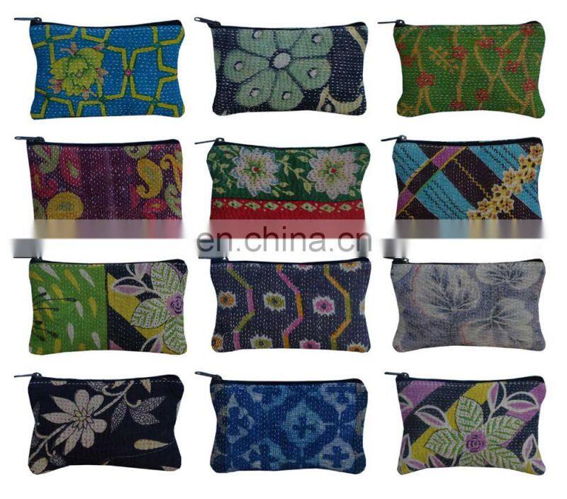 Wholesale Vintage Cotton Kantha Purse Ethnic Zipper Bag Pouch