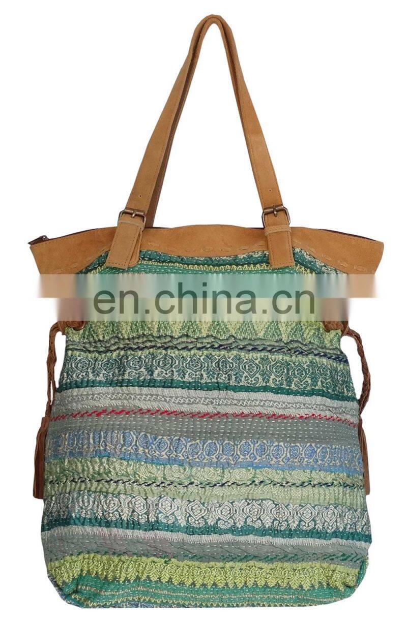 Brocade Stripe Tote Bag Latest Vintage Kantha Hand Bag