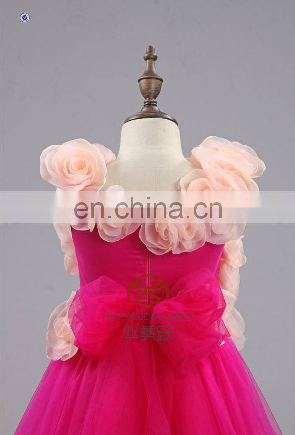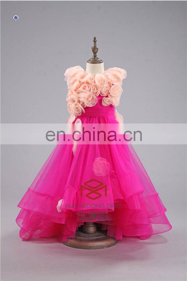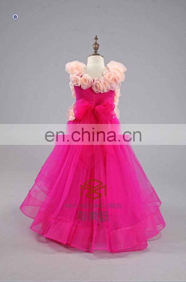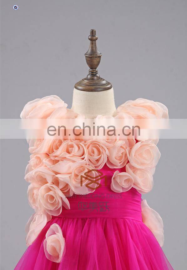 Full Handmade Red Rose Flowers Girl Dress Factory Direct Selling Baby Girls Princess Dress Elegant Lace Flower Girls Dress