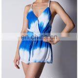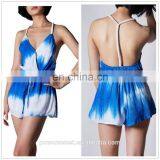 Hot Sexy Girl Tie Dyed Blue and White Backless Spaghetti Skirt With Rayon Material