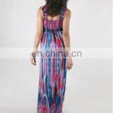 New Women Front Flower Printed Sleeveless Maxi Long Dress