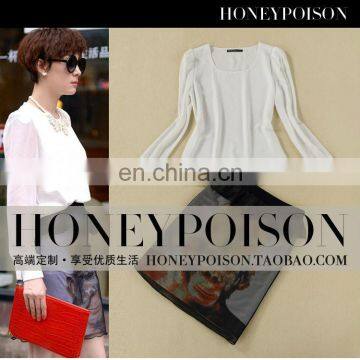 2014 Latest style long sleeve chiffon printed women dress