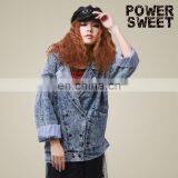 Nostalgic Blue Turndown Collar Long Sleeve Denim Woman Coat