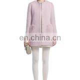 European Style Woollen Coat With Splicing Splicing Pocket for Young Ladies Latest Coat Design