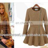 2014 Latest Design Zipper Sleeveless Woollen Bodycon Overcoat Wholesale Dress