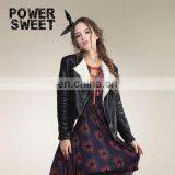 Latest Vogue Style Splicing With PU Leather Sleeve Midi Pattern Thin Woolen Women Jacket Winter