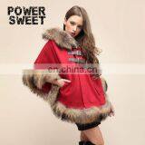 Girls Fashion Temperature Red Lovely Woolen Cloak Cape Overcoat