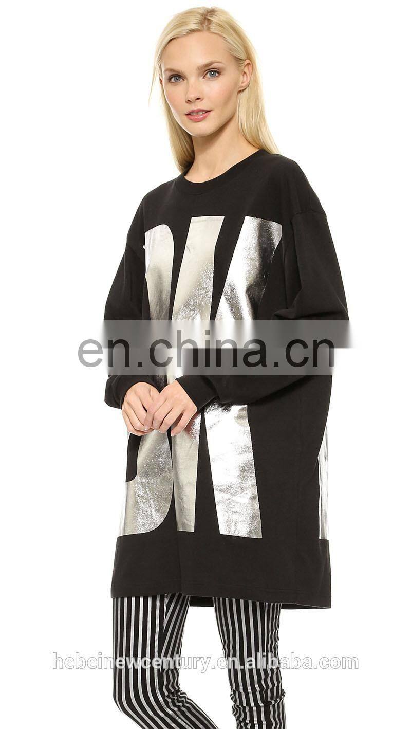 Large Letters Before And After The Hot Silver Printing Bat Sleeve Movement Female Jumper Who Long Woollen Sweater