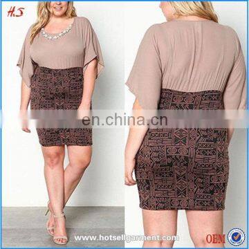Dongguan hot sell women dresses for plus size dress designs fat women tribal chiffon dress with necklace