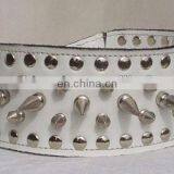 WHITE LEATHER DOG COLLAR WITH SPIKES