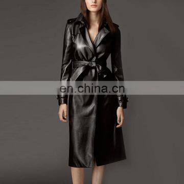2015 Women's Long Overcoat PU Leather Jacket Women Winter