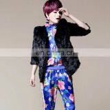 New Product Flower Pattern Party Black Rabbit Fur Coat