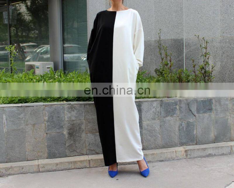 Black And White Muslim Women Contrasting Maxi Dress (16042701)