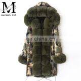 2017 Fashionable High Quality Winter Long Style Genuine Rabbit Fur Lined and Fox Fur Collar Hood Parka Coat