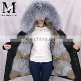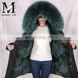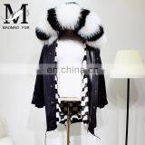 Hot Sale High Fashion Real Rabbit Fur Lined Parka Coat With Fox Fur Collar Women Hooded Fur Parka