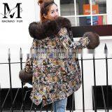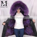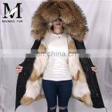 Factory Price Women's Winter Removable Genuine Raccoon Fur Trim Coat With Real Fox Fur Lining Outerwear Fur Parka