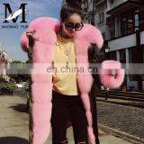2017 Hot Sell Women Fashion Long Rabbit Fur Parka With Fox Fur Hooded