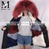 New Design Style Parka With Big Raccoon Fur Collar Colorful Mink Fur Jacket