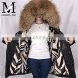 Newest Fashion Genuine Fur Lined Parka Large Raccoon Fur Hooded Mink Parka 2016