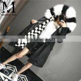 Korean Style Comfortable Women Long Parka Black And White Box Shape Mink Fur Parka
