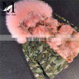 Military Long Sleeve Fashon Real Rabbit Fur Lining Parka Coat Women Real Pink Fur Hood Parka