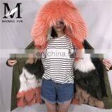 High Quality Short Military Woman Real Fur Parka Genuine Raccoon Fur Hood With Mink Fur Lining Coat