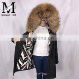 2015 Clothing Factory in China Cheap Large Raccoon Fur Hooded Coat Parka With Fur