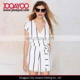 Classic White and Black Stripe Cap Sleeves Sexy Low V- Neck Romper & Jumpsuits