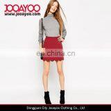 Ladies Vintage Skirt Pattern Wine Red A-Line Mini Skirt With Scallop Hem
