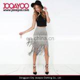 Latest Women Skirt Fashion Pattern Grey Suede Fringe Highwaist Skirt
