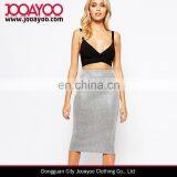 Knit Fabric High Waist Design Boohoo Silver Metallic Elastane Mid Pencil Skirt For Women