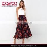 2017 Long Skirt Designs Women Elegant Pleated Maxi Floral Print Skirt