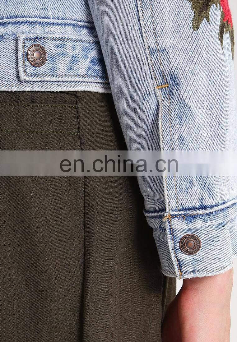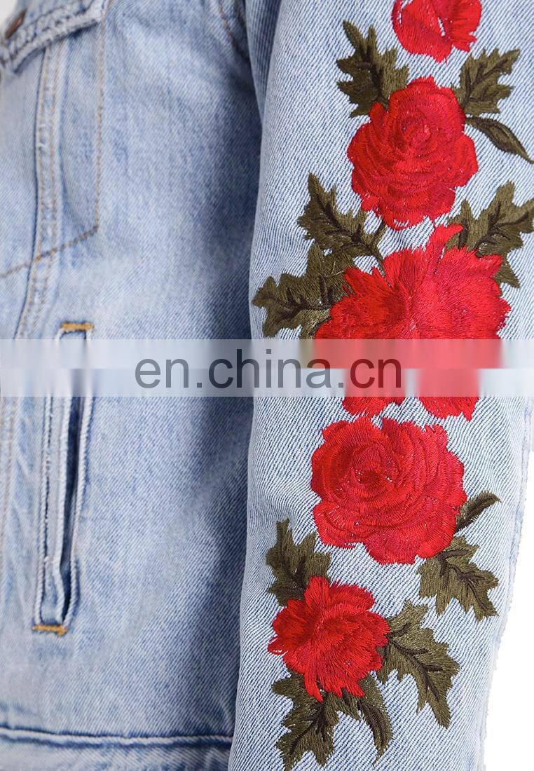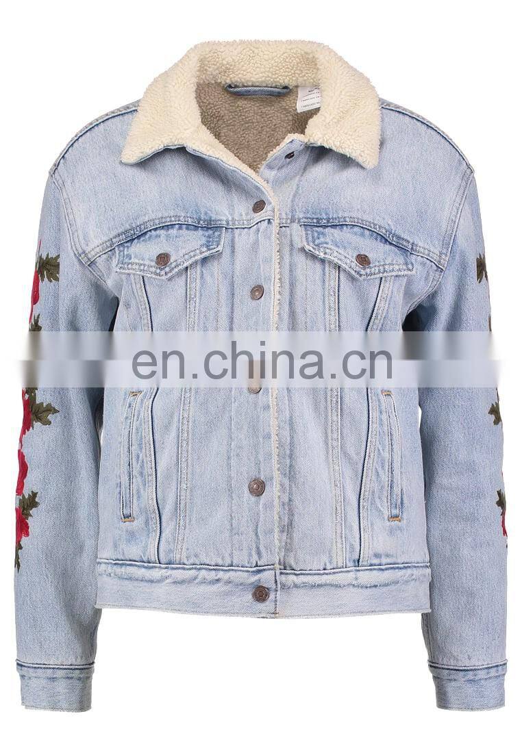 Factory OEM Embroidered Sherpa Lining Womens Denim Jacket