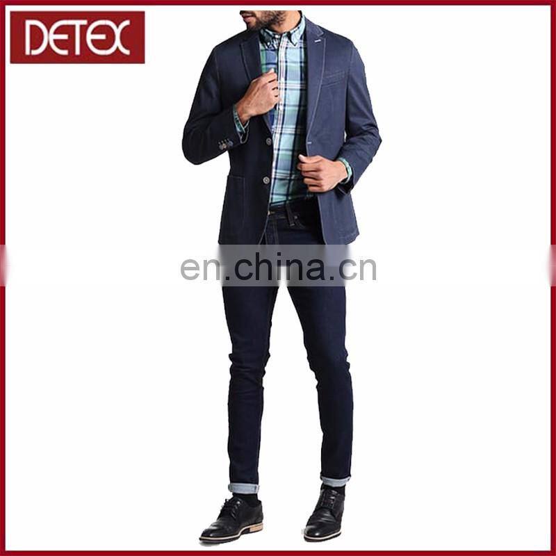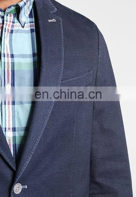 Cotton Simple Style Dark Blue Casual Suit Men Blazer