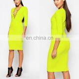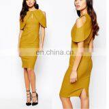 2016 New Design Yellow Woven Fabric Women Midi Prom Pencil Dress