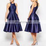 2016 OEM High Quality Fitted Waist A-line Royal Blue Sleeveless Bling Bling Midi Prom Dress