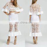 China Factory Florals See Through White Mesh Lace Twin Sets Mermaid Prom Dress