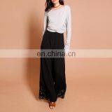 Stylish Tunic Lover Crochet Detail Black Wide Women's Casual Pants